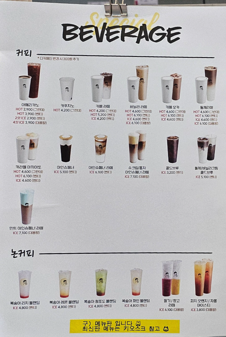 음료와 커피 메뉴도 정말 다양하고