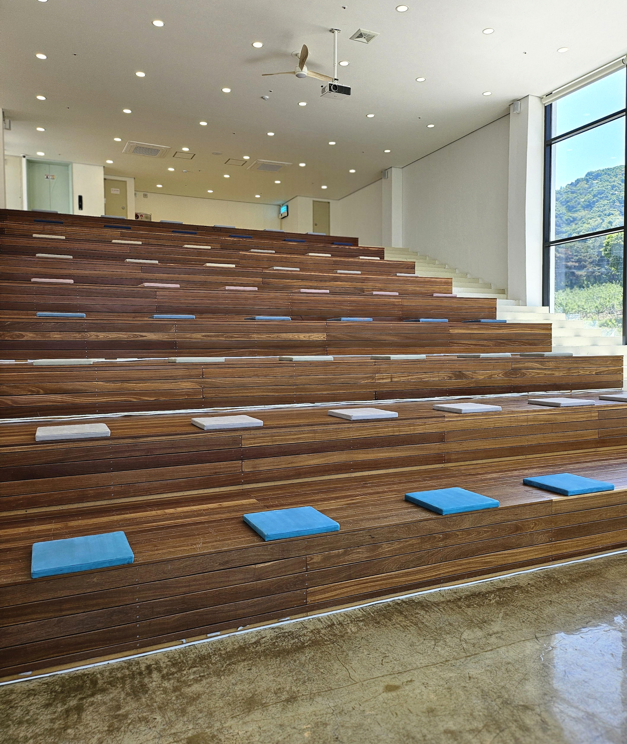 2층으로 올라가는 계단 옆으로 아래 푸른색